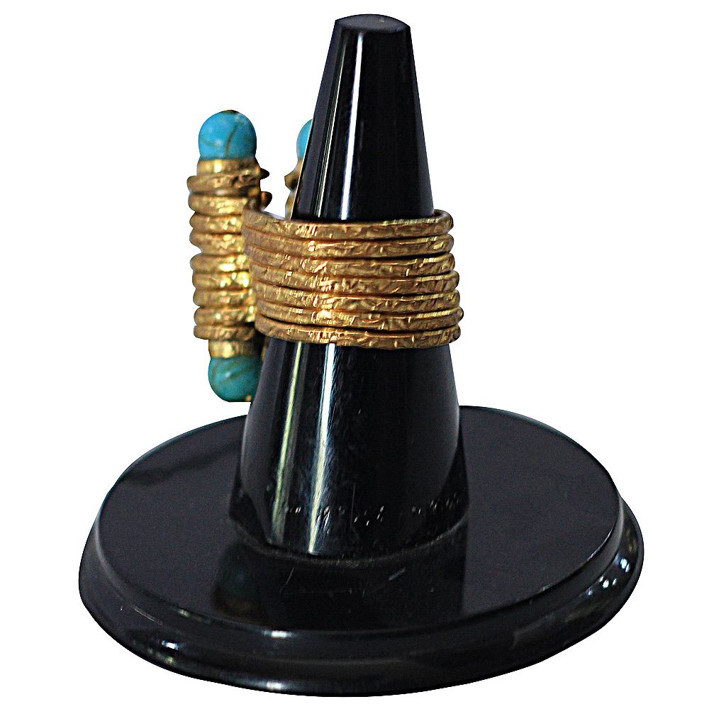 Golden strand design ring with turquoise holding stands at the end of both side is gives you stylish and unique look.