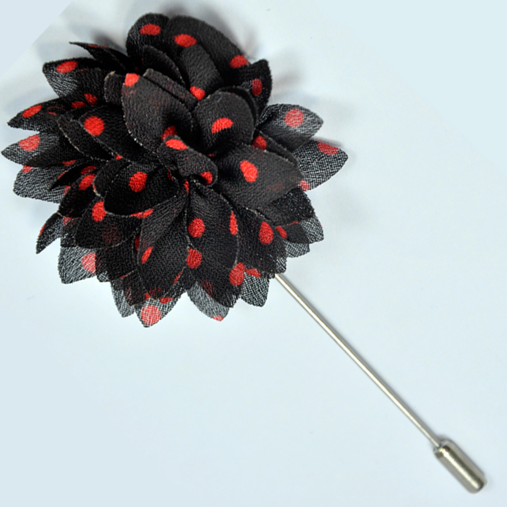 BLACK & RED POLKA FLORAL LAPEL PIN