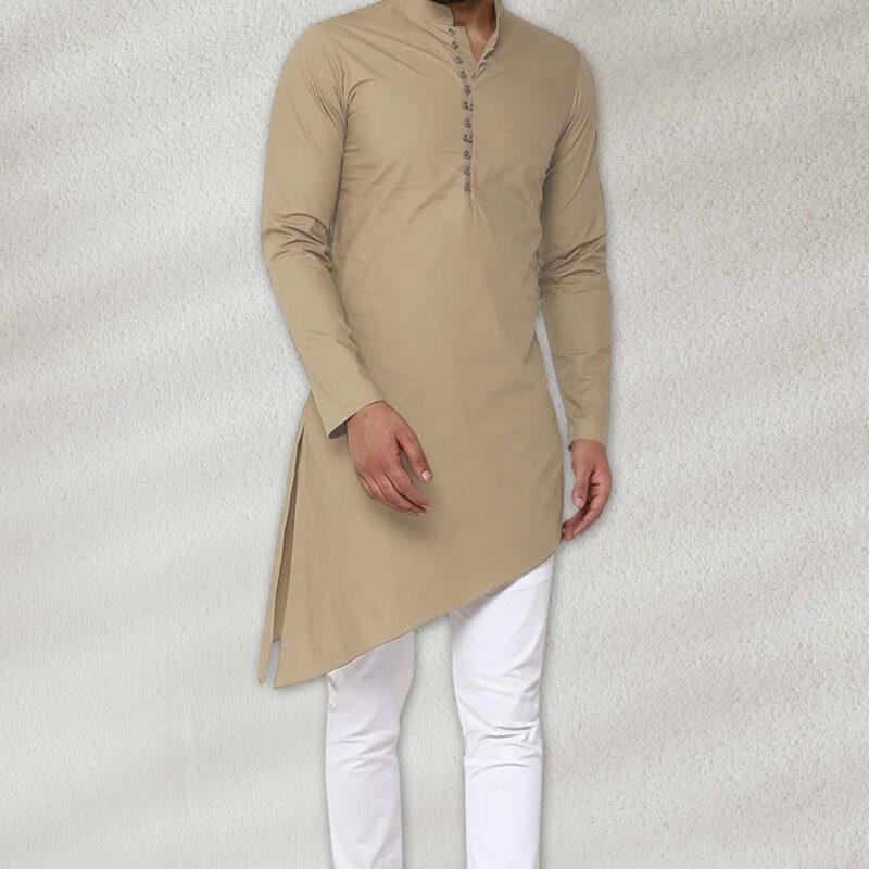 Trendy light Brown & stylish side cut kurta is a great way to show off your style. You can wear it on special occasions like Eid & other events.