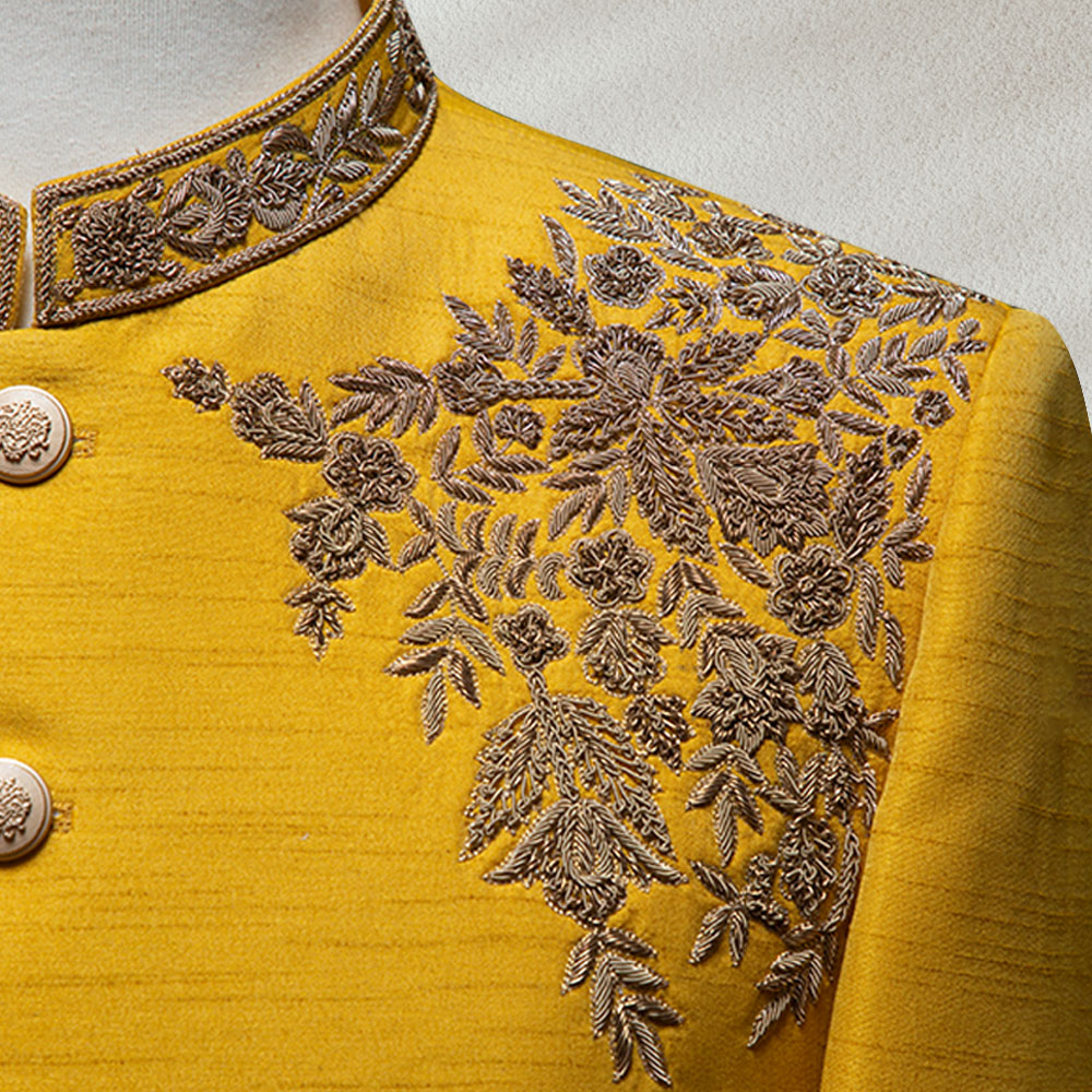 Be the first to review “Cadmium Yellow Embroidered Prince Suit” Cancel reply