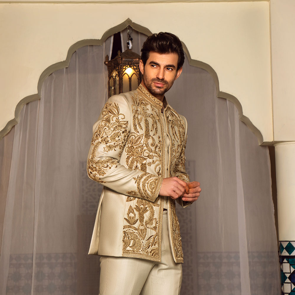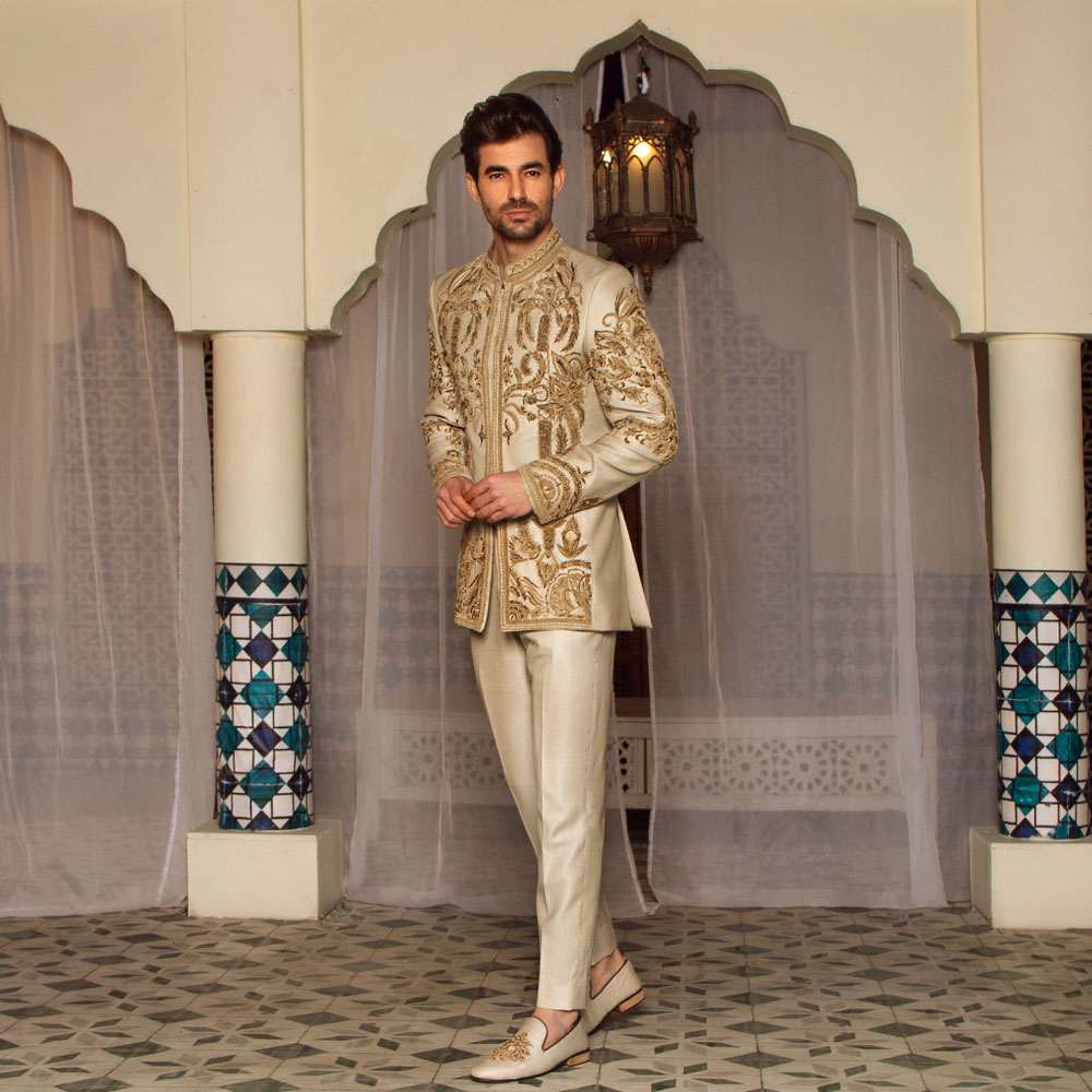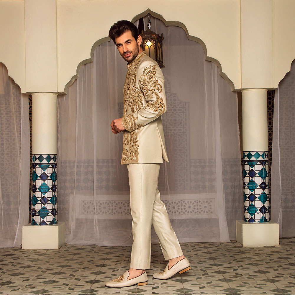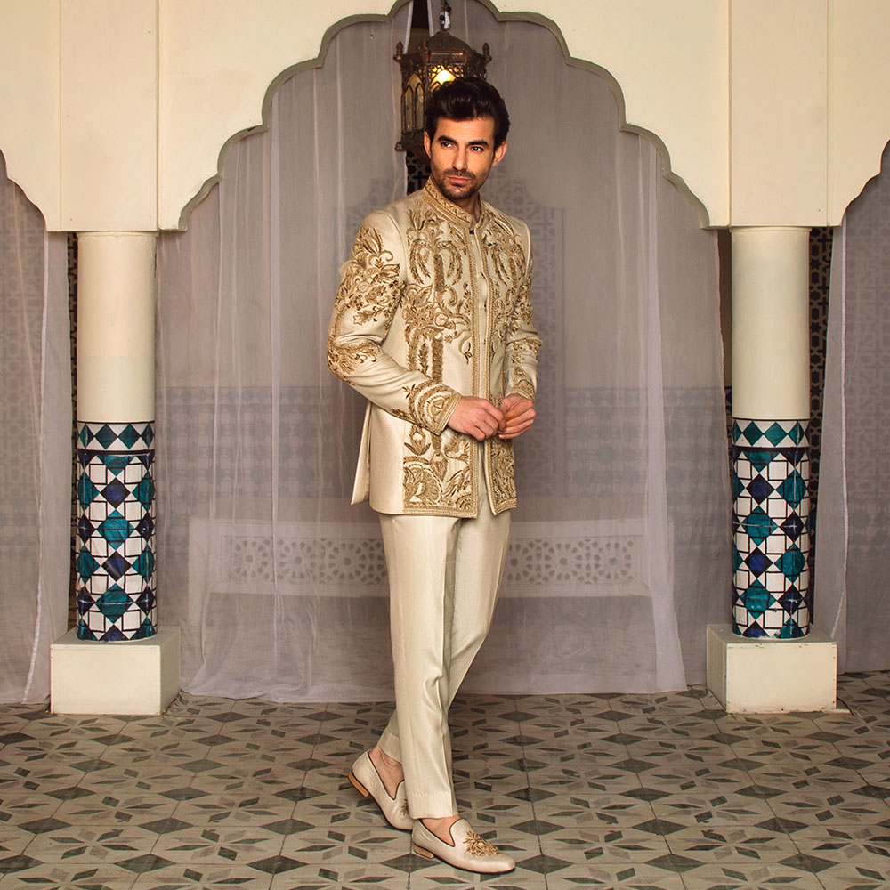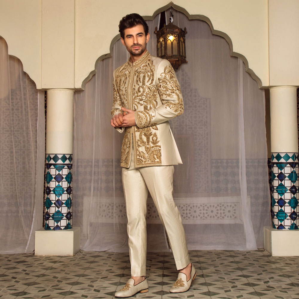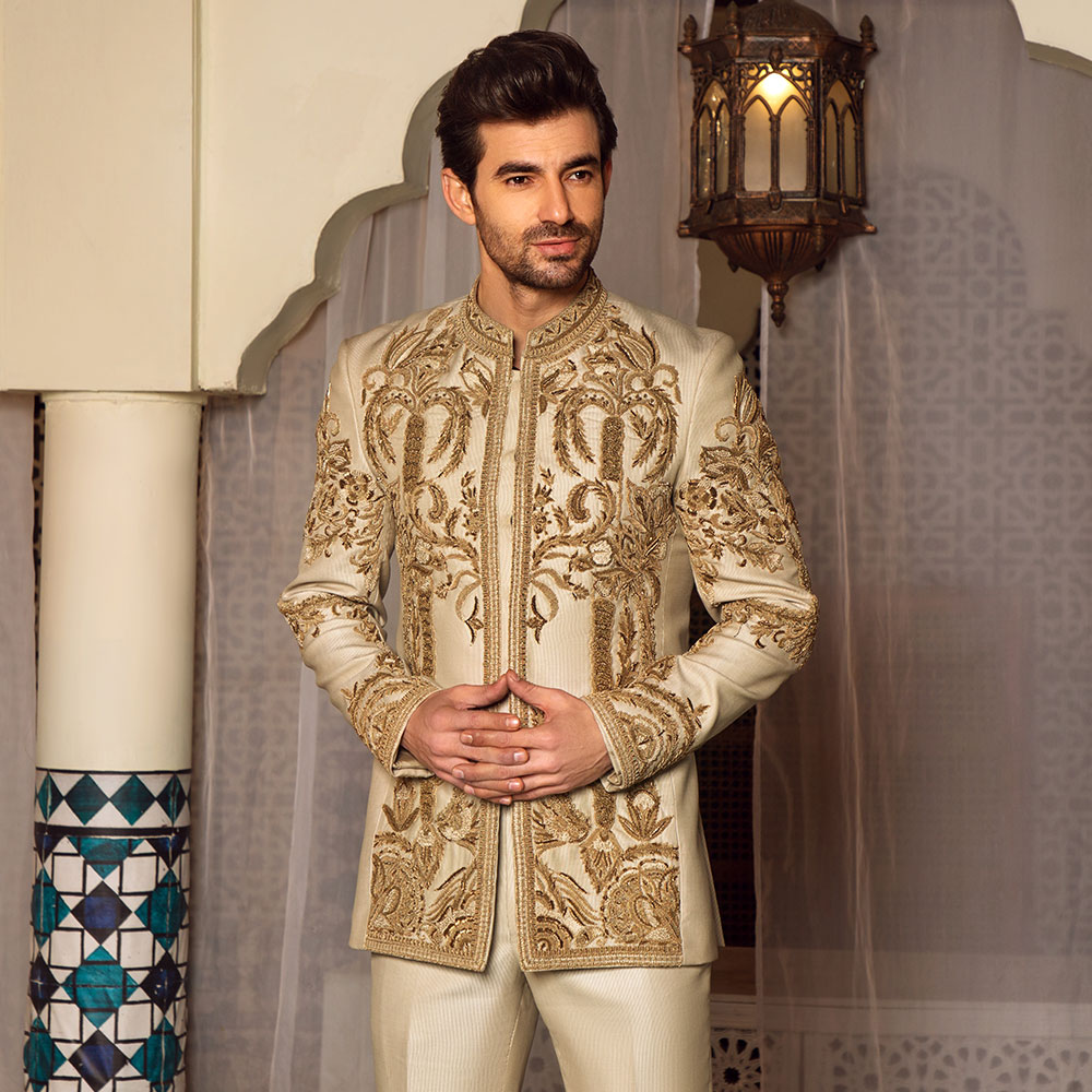 Be the first to review “Creamy Prince Suit with Golden Embroidery” Cancel reply