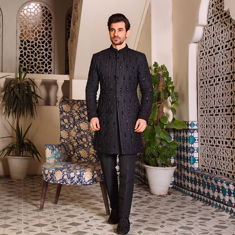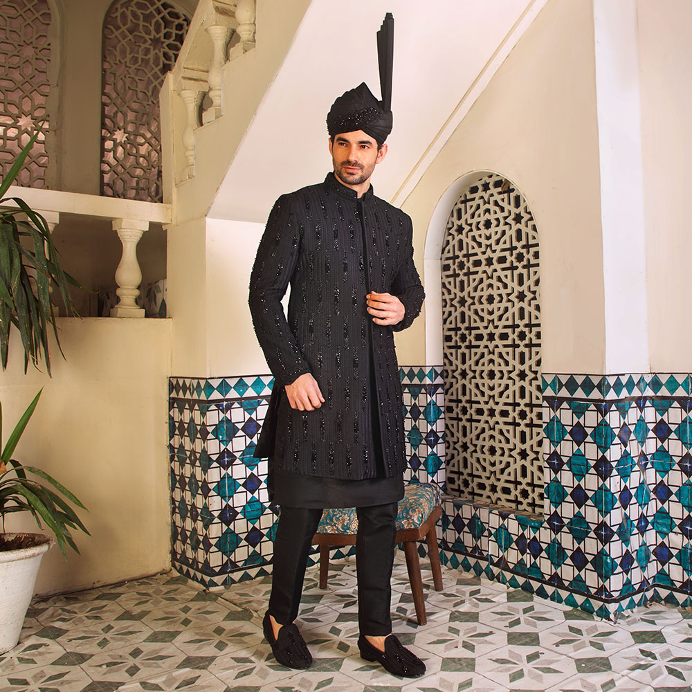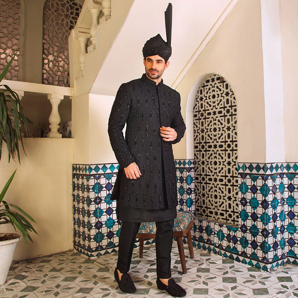 Be the first to review “Black Bead Work Sherwani” Cancel reply
