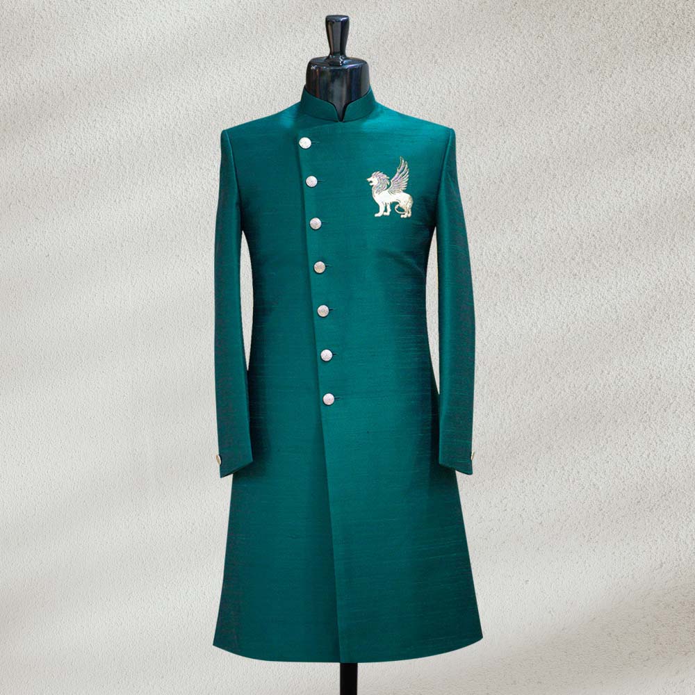 Be the first to review “Dark Green Raw Silk Indowestern Sherwani” Cancel reply