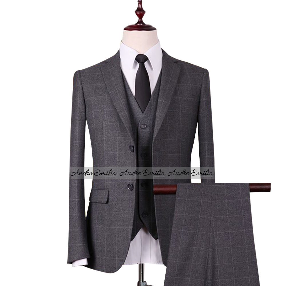 Elegance is what this grey window pane check 3 Pcs Suit from Andre Emilio, brings. Crafted meticulously from Italian Tropical wool fabric, this suit speaks volumes of class. The inquired customize “Kings 3pcs suit” paired with V-Shape four button waistcoat which makes it perfect also marry it with brown shows and pocket square for the complete ensemble.