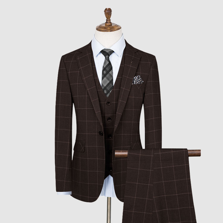 Men Brown 3 Piece Suit for a wedding or party wear is paired with slim-fit pants to create the perfect balance of shapes and proportions. The finishes of the details complete an extremely versatile Tuxedo that exudes classic, timeless elegance.