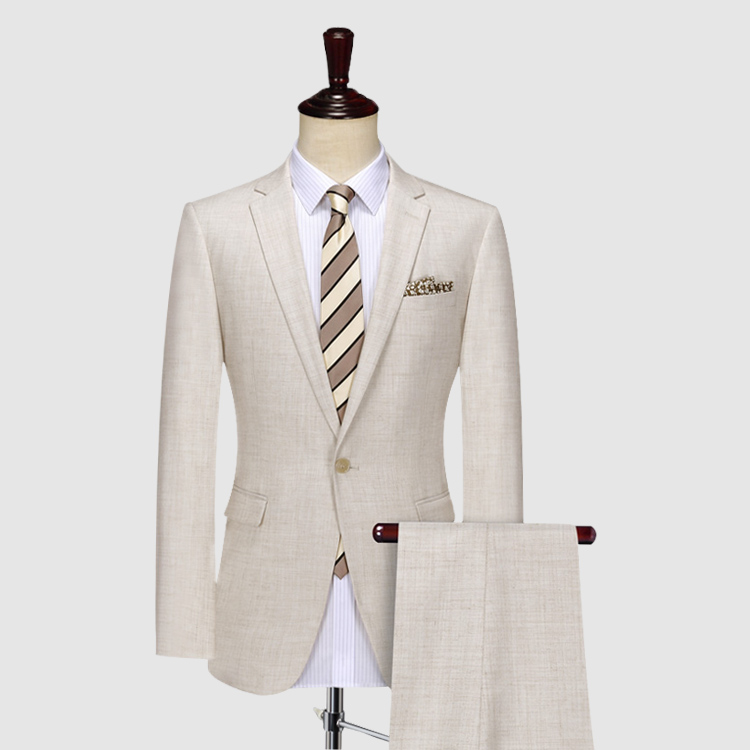 Men Stone White Suit for a wedding or party wear is paired with slim-fit pants to create the perfect balance of shapes and proportions. The finishes of the details complete an extremely versatile Tuxedo that exudes classic, timeless elegance.