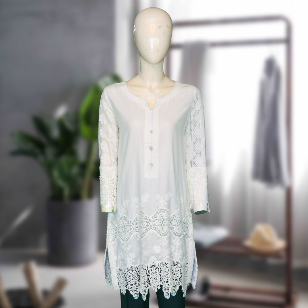 The white cotton simple embroidered straight shirt is good for any formal dinner as it gives you a decent look.