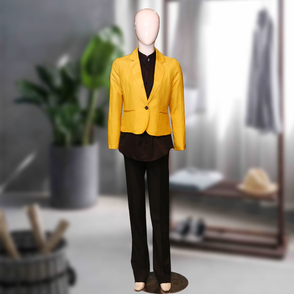 Look stylish & elegant at the same time in this short yellow coat. Crafted in linen fabric for a smooth look.