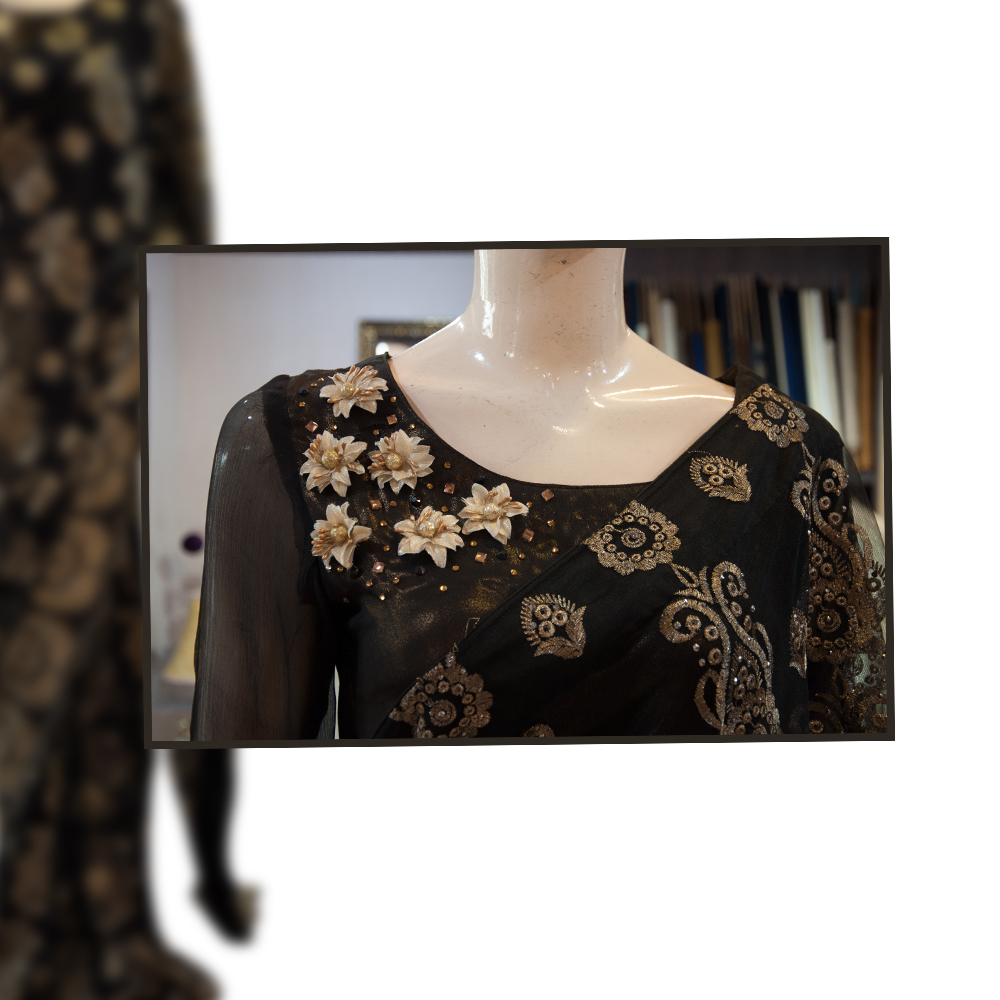 Be the first to review “Fancy Net Designer Saree in Black and Golden Color” Cancel reply