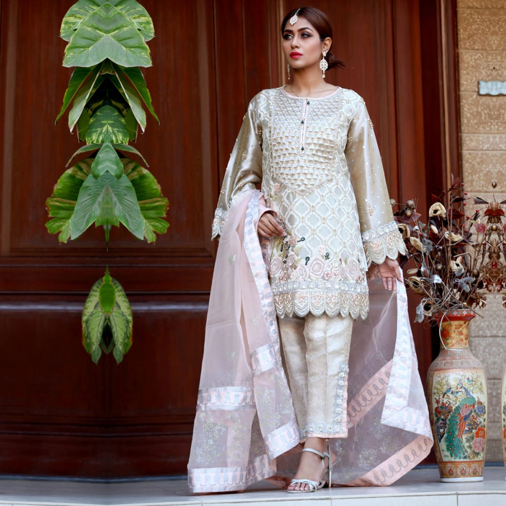 Be the first to review “Self Tissue Lilac Dress with Zari and Thread Work” Cancel reply