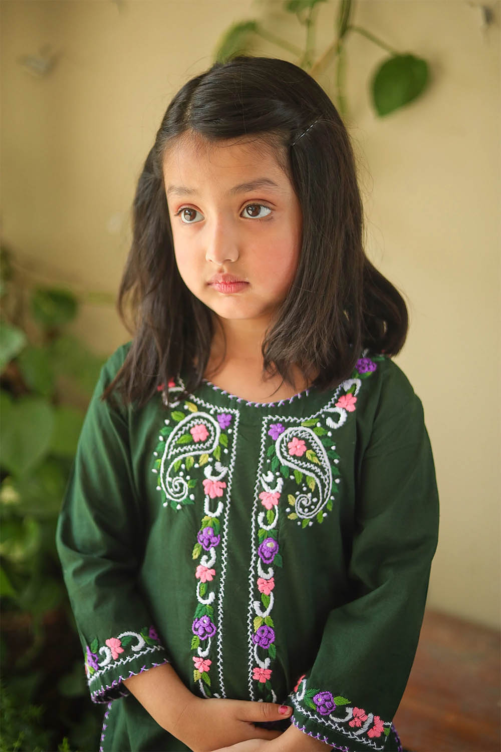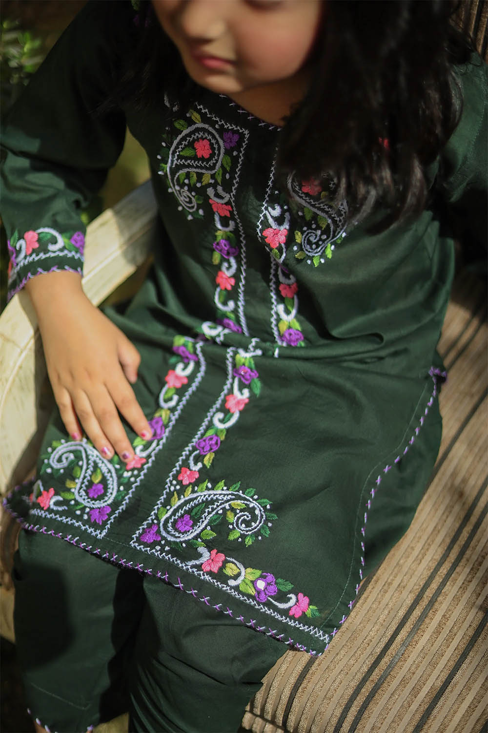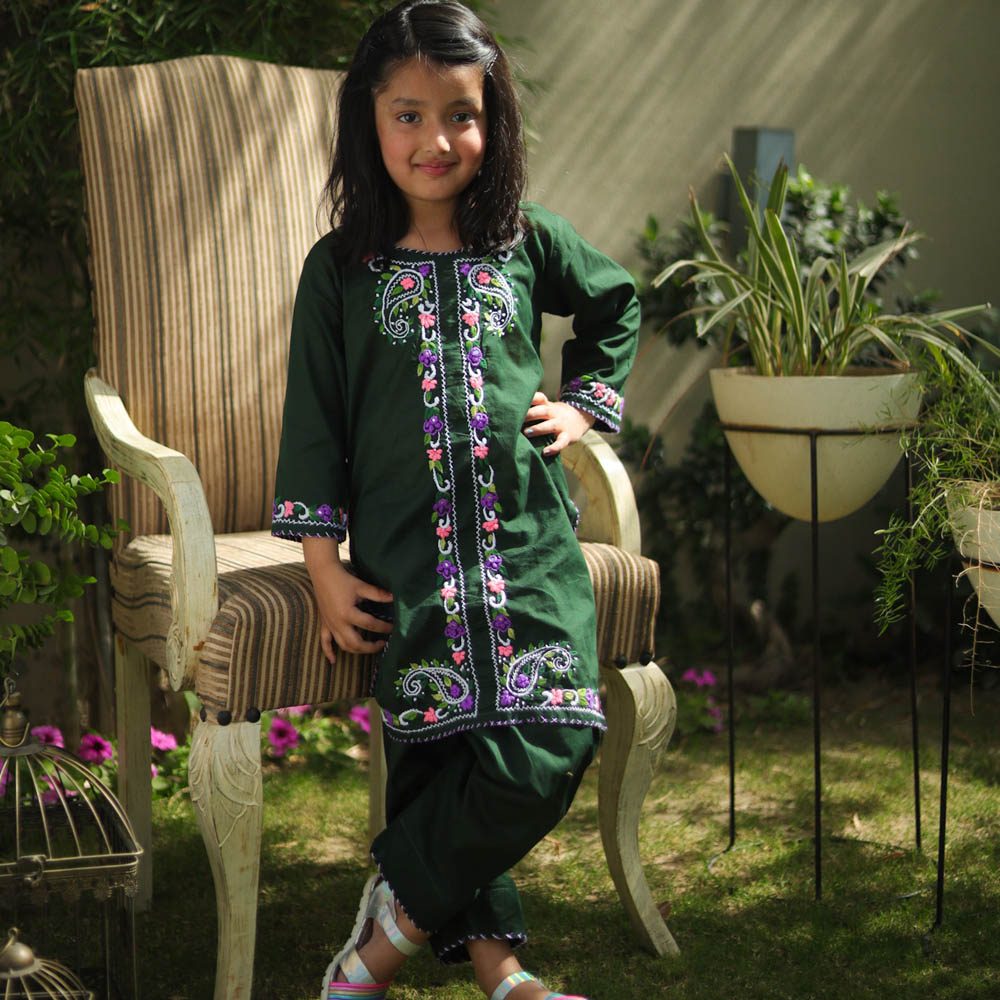 Two-piece hand embroidered shirt and straight trousers perfect for kids and adults.