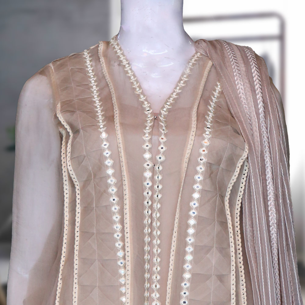 Simple and elegant is always the priority choice for women. Dusty gray organza shirt with embroidery is the perfect choice for any party or family occasion.