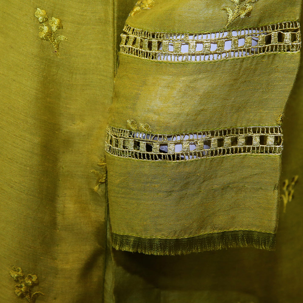 Add some glossy look with this karandi elegant mehndi green shirt with embroidery is a good choice for a semi-formal occasion